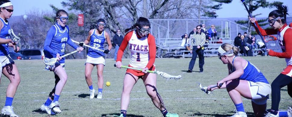 NYACK, NY - Sophomore Victoria Lopez-Nash and Stacey Cervantes each tallied a goal, but the Nyack College women's lacrosse team fell to Georgian Court University at home by a score of 20-5. Captain Lauren Lebo led the Lady Warriors with 3 goals, 4 ground balls, and a game-high 6 draw controls in the effort while teammate Cervantes, also splitting the team-best with Lebo, recorded 4 ground balls and 1 assist. Nash's lone goal debuted her scoring on the year and also won 4 draws respectively.