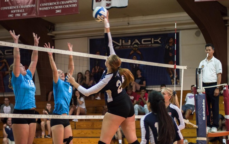 Box Score 2 Nyack hosted Holy Family and Merrimack in the first home volleyball tri-match of the season, defeating Holy Family 3-2 to improve to a 3-1 conference record and losing to Merrimack 1-3.