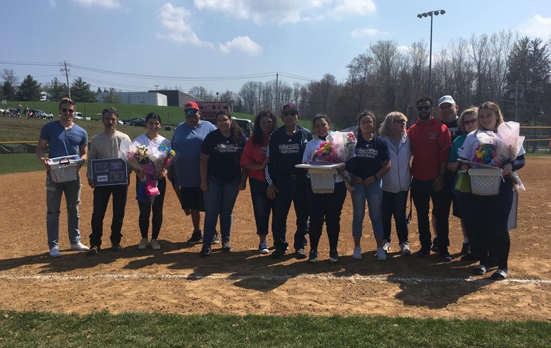 The Nyack College softball team hosted the Holy Family Tigers in the Warriors' last game of the season, as Nyack dropped both games 12-1 and 7-5. The Warriors honored their senior players,