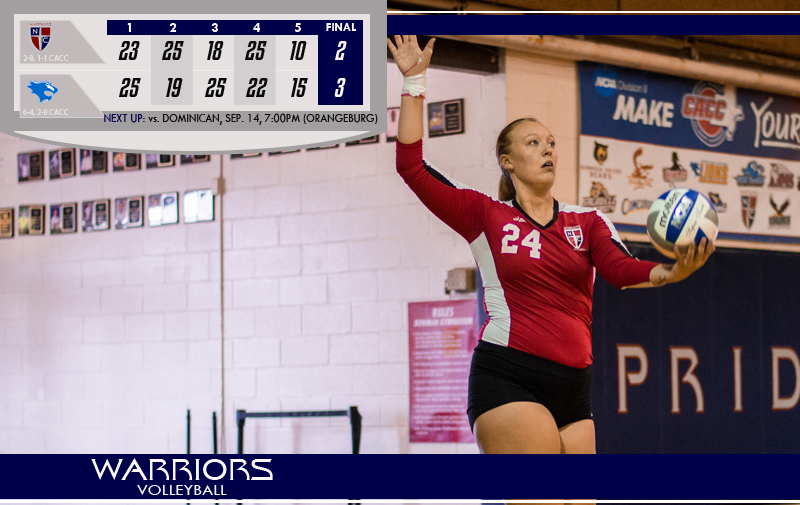 Box Score Nyack, NY - The Nyack College volleyball team hosted the Georgian Court University Lions in a CACC matchup on Tuesday night. The game ended with a final score of 2-3. With the loss the Warriors fall to 2-8 and 1-1 in CACC play.