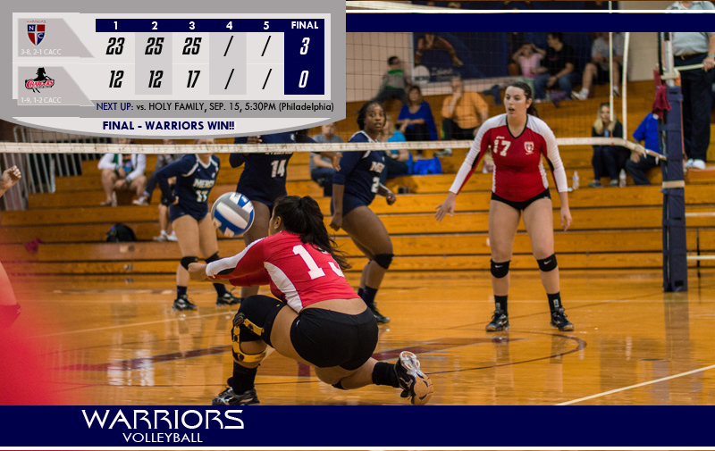 Box Score Orangeburg, NY - The Nyack College volleyball team earned their second conference win against the Dominican College Chargers with a 3-0. With the win the Warriors are now 3-8 and 2-1 in CACC play.